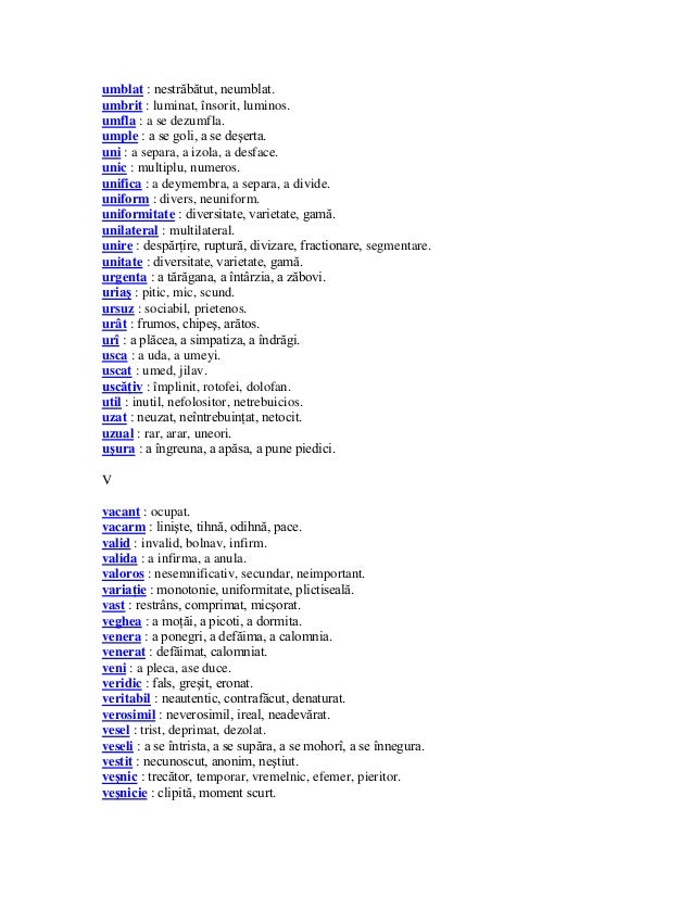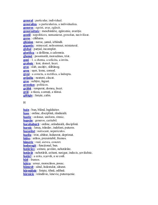 vizitati articolul complet aici : https://idoc.pub/documents/dictionar-j3no6ogqyynd Izvoru47 și 704 alți utilizatori consideră că. Gaseste cate un sinonim si un antonim pentru cuvintele : Găsește definiţia lui antonime şi sinonime în dicționarele româneşti.