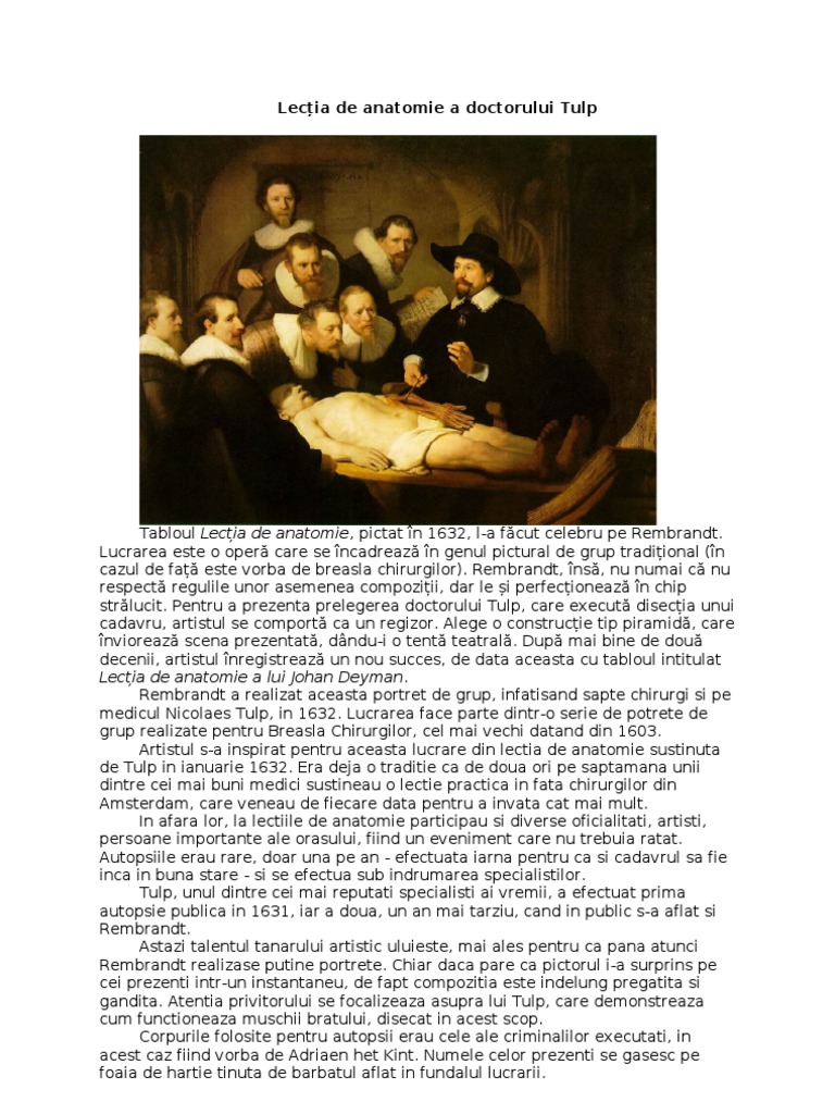 Tabloul de mai sus a starnit controverse in toate mediile din lume. Lecția de anatomie a doctorului tulp. Publicat de adina chițu la 00:14.